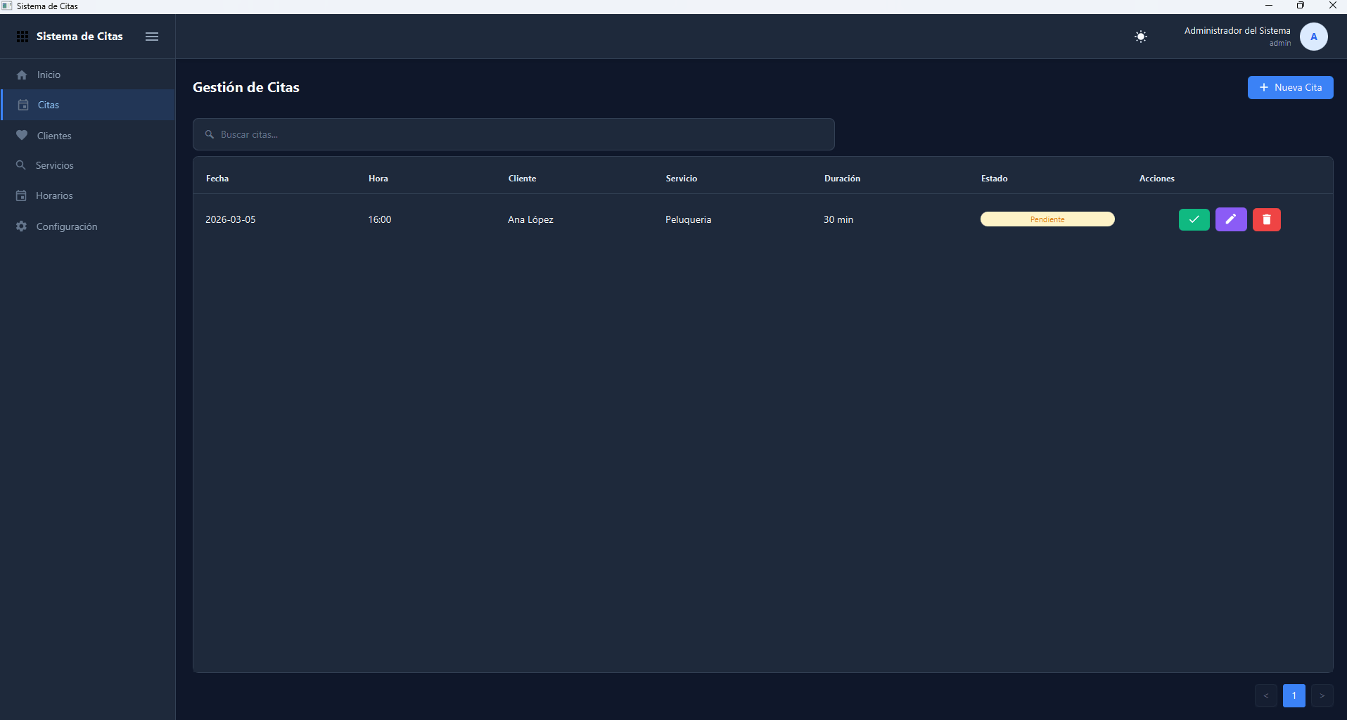 - Gestión de Servicios — catálogo de servicios con duración y precio